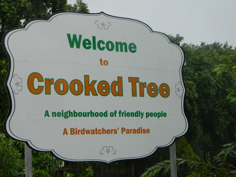 There will be the sign indicating Crooked Tree Village which is a left turn off the highway unto an unpaved road. You continue along the road across the lagoon until you see a "Welcome to Crooked Tree" sign and the Audubon visitor centre on your right.